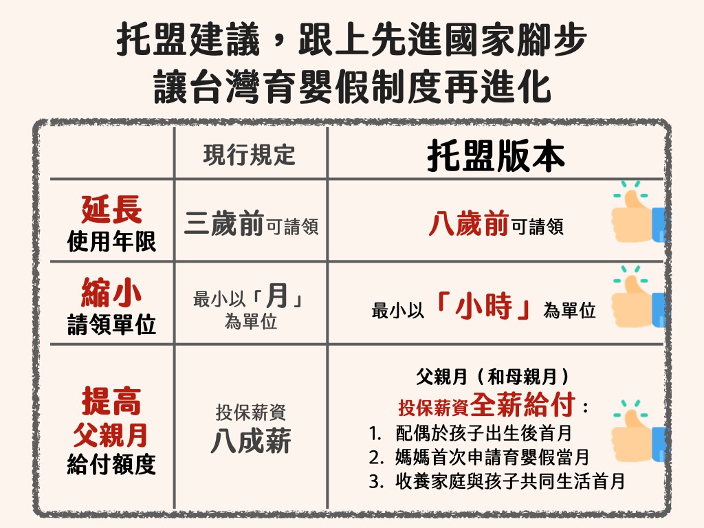 - 家庭照顧假另開放以小時為單位(每年56小時),不扣全勤獎金,但非本題重點。