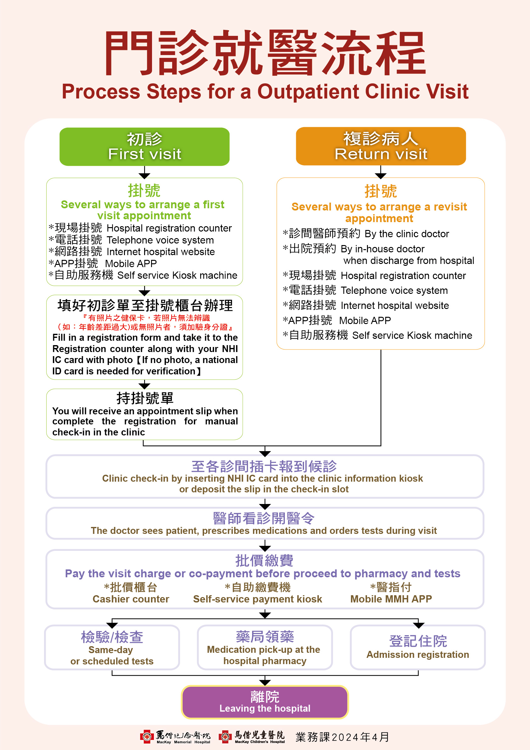 台灣醫院門診流程大致相似,以下為標準步驟(依各院略有差異,請查詢特定醫院官網確認):