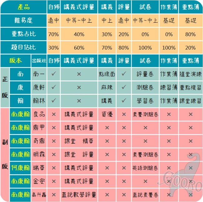 - 各出版社試題在命題角度、能力指標解讀上會有差異;為維持評量與教學目標(課綱、能力指標)的一致性,應優先選用與本校所用教科書版本或課程目標對應的題庫,避免不同版本之間的概念落差影響學生表現與學習連貫性. 引用來源:教材版本差異與學習連貫性研究、教科書版本分析.