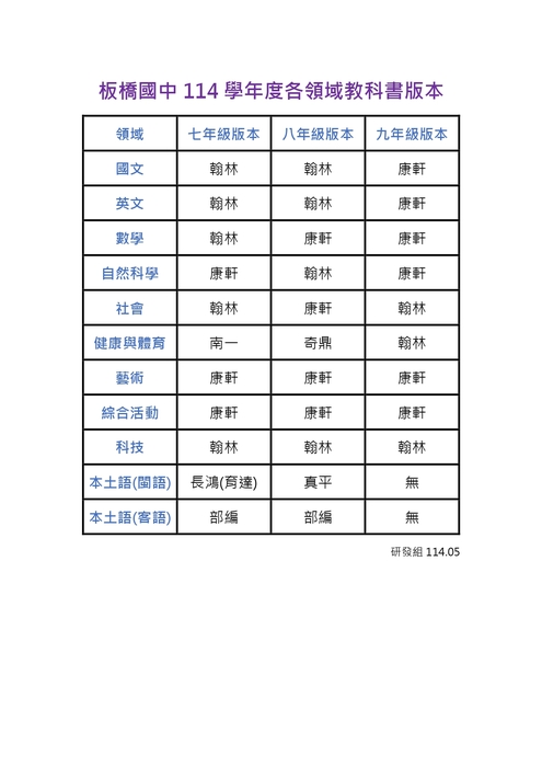 - 其他平台:教材福利社提供全省國中小版本查詢;部分學校網站(如台北市樹人國中)直接公布年度版本表。
