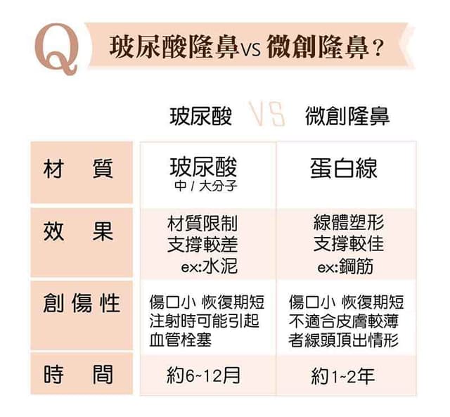 埋線、玻尿酸與手術隆鼻比較