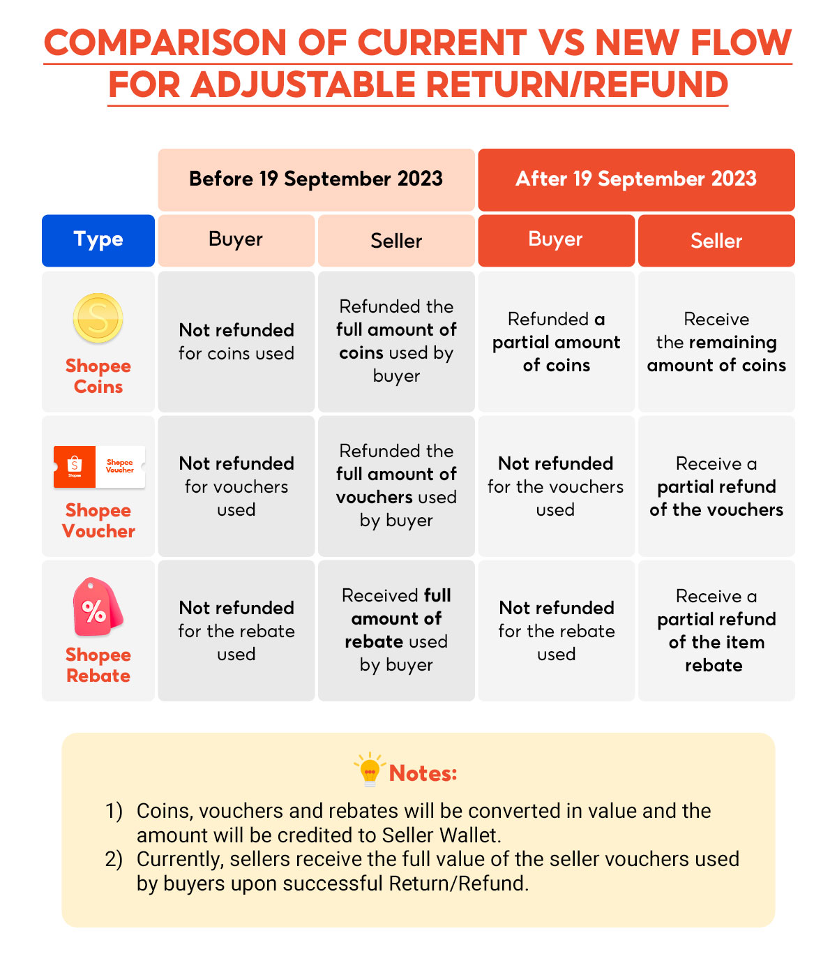 - 貨到付款或銀行轉帳:退款進入蝦皮錢包。