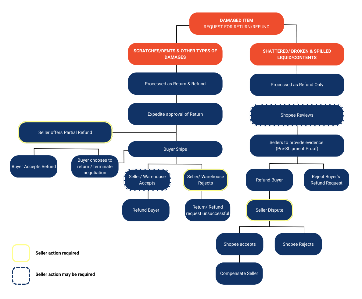 - 買家須在Shopee履約保證期間(商城訂單15天猶豫期)內透過平台申請,選擇「退貨退款」或「僅退款」。