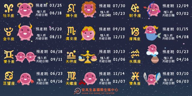 - 計算方式:星座依國曆出生日(非農曆),預產期僅估計,實際出生可提前/延後3週,建議放寬範圍推算。