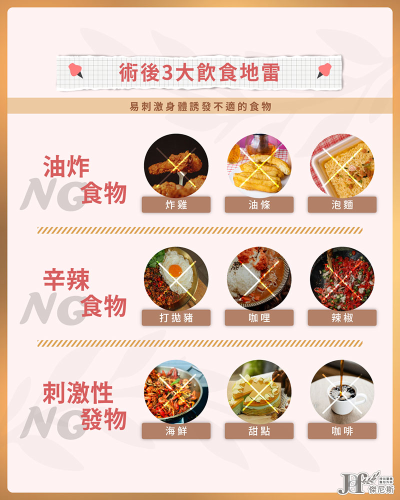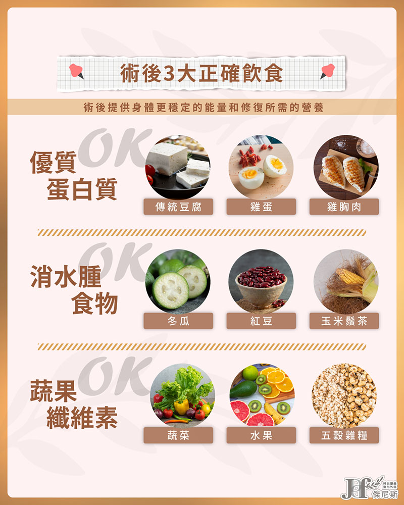 | 軟食/正常飲食 | 1週後 | 魚、雞肉、粥、蔬果(避免油膩、高糖、高脂) | 穩定修復,重建元氣 |