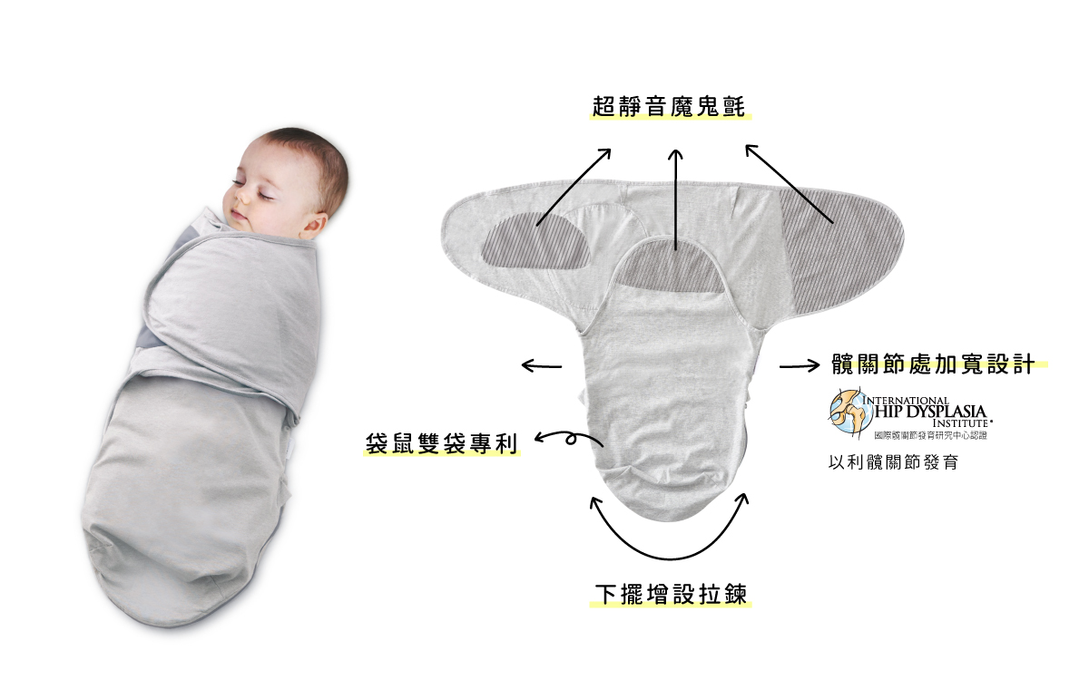 - 例如蝶型包巾設計讓雙手自然向上舉,維持熟悉姿勢,同時保有自我安撫能力,降低反射干擾睡眠。