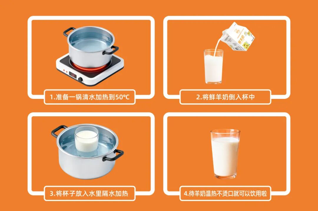 羊乳加熱以微溫為原則(建議不超過72°C),避免過熱破壞短鏈脂肪酸導致羊腥味,並盡快飲用完畢(加熱後30分鐘內),勿再冷藏。