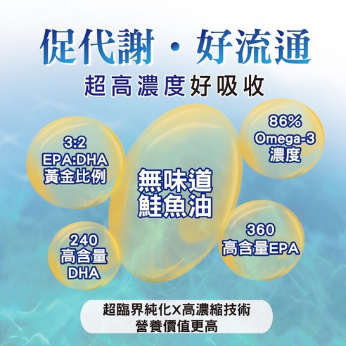 - 共同功效:降低慢性發炎、支持代謝,濃度80%以上產品吸收更好(濃度公式:(EPA+DHA)/魚油總量×100%)。