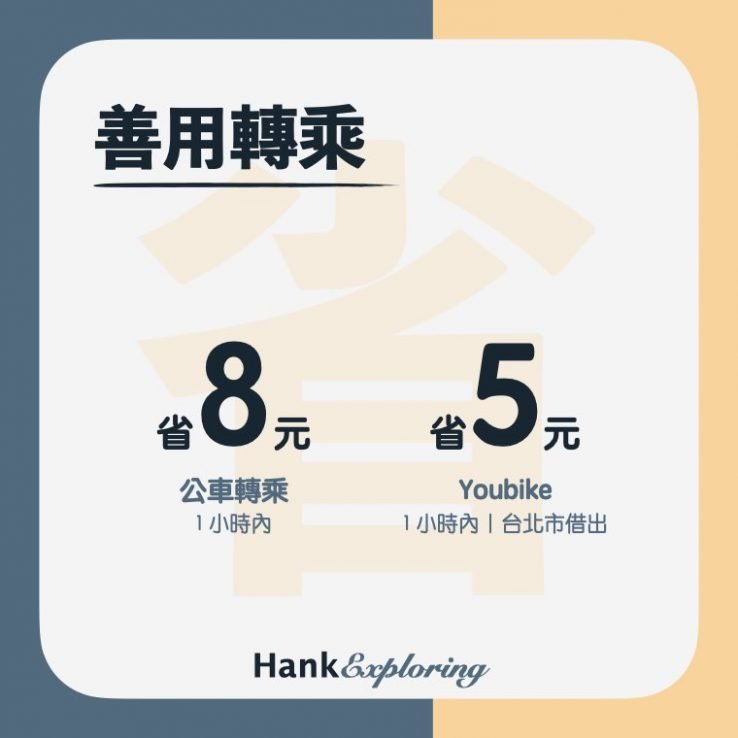 - 適用範圍:公車(不含里程收費公車)與捷運雙向轉乘,每次依票種享有不同額度折扣(例如悠遊卡常見8元優惠)。
