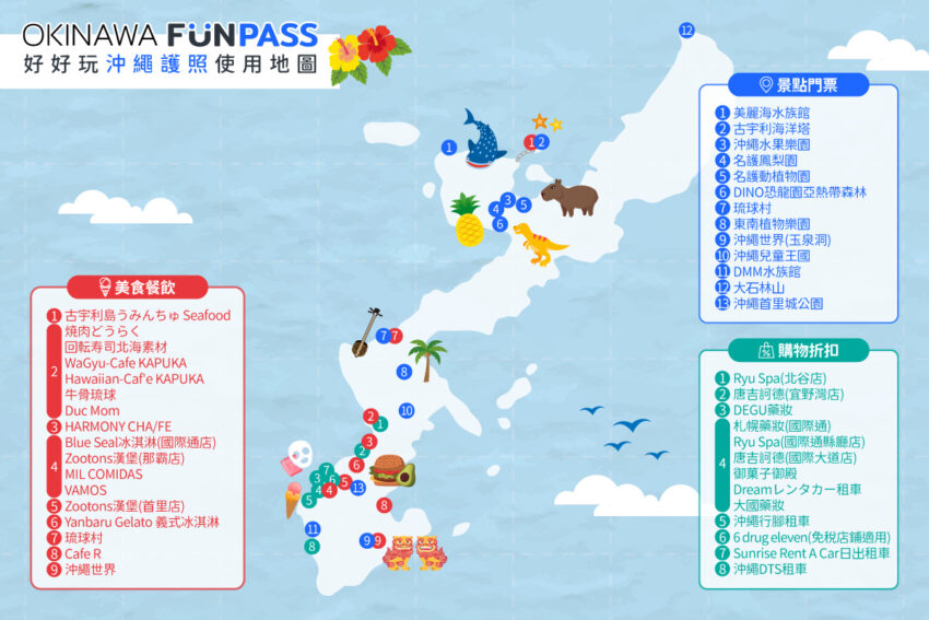 - 餐飲:市場新鮮海鮮丼或沖繩そば。