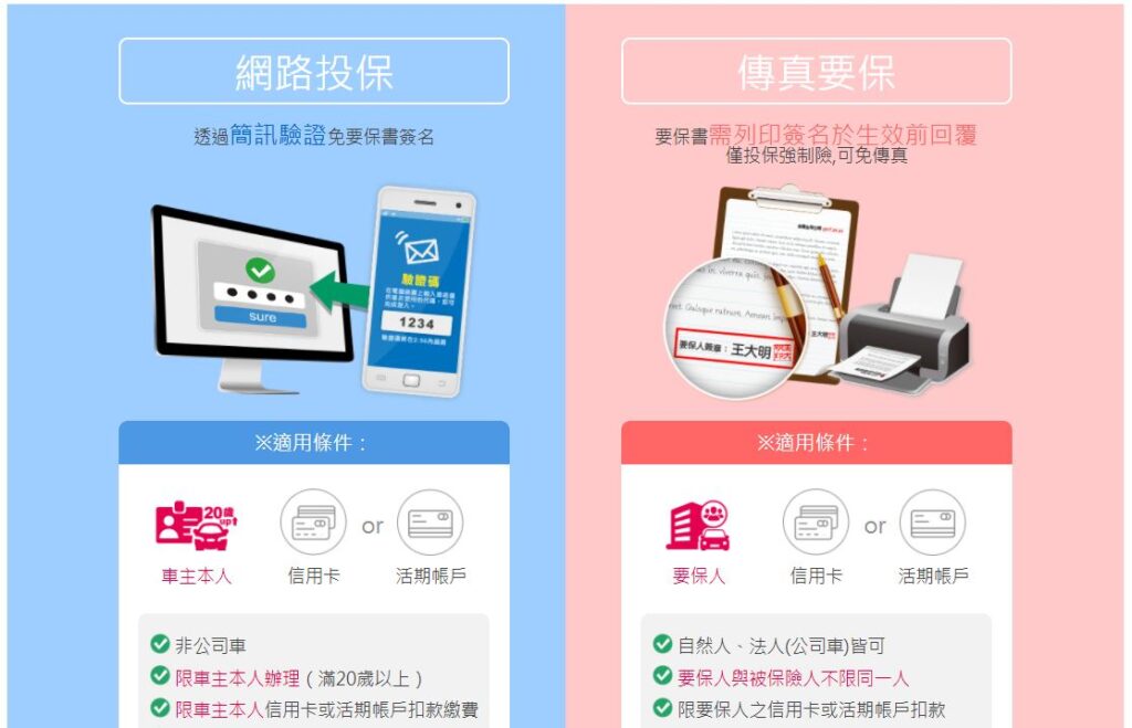 線上投保:需自行寄送理賠文件或透過理賠聯盟鏈(有險種限制),發生事故時需自行聯繫保險公司客服。