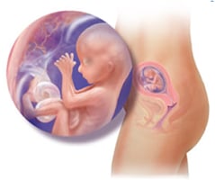 寶寶已長出生殖器官,循環系統開始運作,並發展出吸吮反射。海馬迴(掌管聽覺和記憶的腦區)也開始發展。