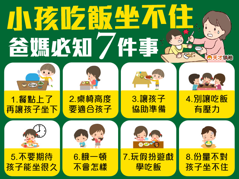 - 營造愉快氛圍:大人保持正面對話,不討論負面話題,全家約定不滑手機,讚美孩子短暫坐好表現(如「你坐得好棒!」),即使溜下也重複座墊遊戲而非責罵。