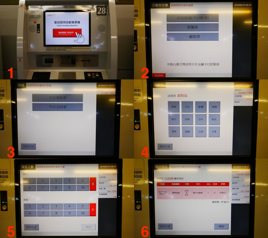 購票通路包括網路訂票系統、便利商店ibon、手機T Express App及車站售票窗口。取票方式可透過車站窗口、自動售票機或T Express電子車票,便利商店取票每張扣10元手續費。