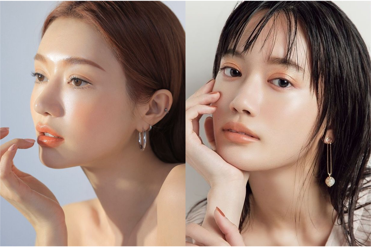 日本女生裸妝+無底妝自然妝趨勢強調減少厚重粉底,追求乾淨、透明、柔霧的肌膚光澤感,讓妝容貼近素顏卻更精緻。