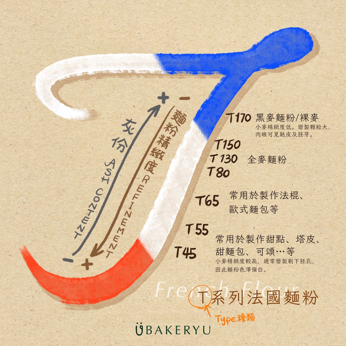 麵粉筋度分類與蛋白質含量