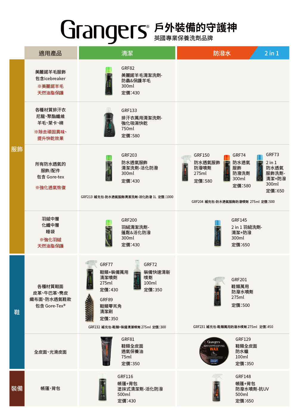 - 清潔劑:僅用少量中性液體洗劑(如沙拉脫、洗碗精、南僑肥皂),禁用洗衣粉、柔軟劑、去漬劑、漂白劑或含潤絲成分產品,否則會堵塞防水微孔。