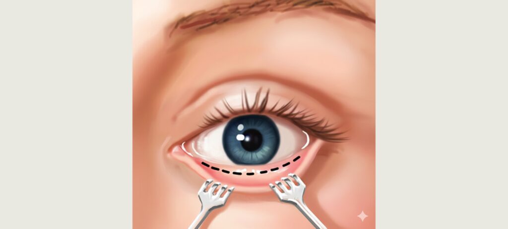 - 無外部疤痕:手術切口位於下眼瞼內側結膜,外表幾乎看不出傷口,術後無明顯痕跡。