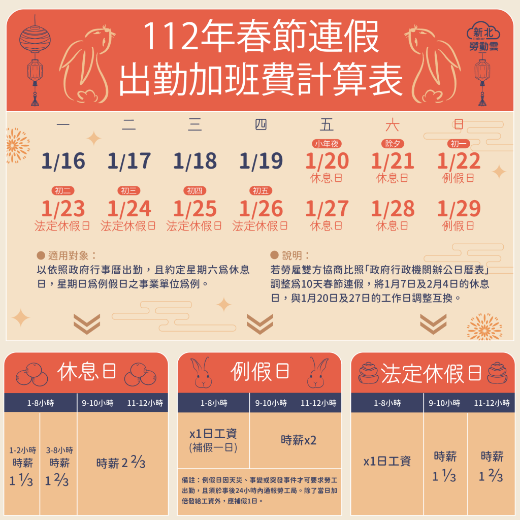 - 常見錯誤:誤將小年夜視休息日(2026年起為國定假日),或忽略服務業PT(兼職)每小時雙倍。