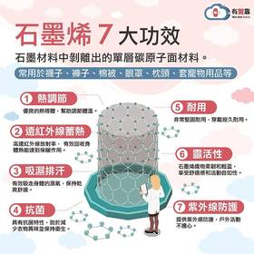 - 柔韌親膚:石墨烯無毒、無過敏,對皮膚友好,具吸濕排汗、透氣乾爽功能,避免悶熱不適,睡感或穿感均舒適。