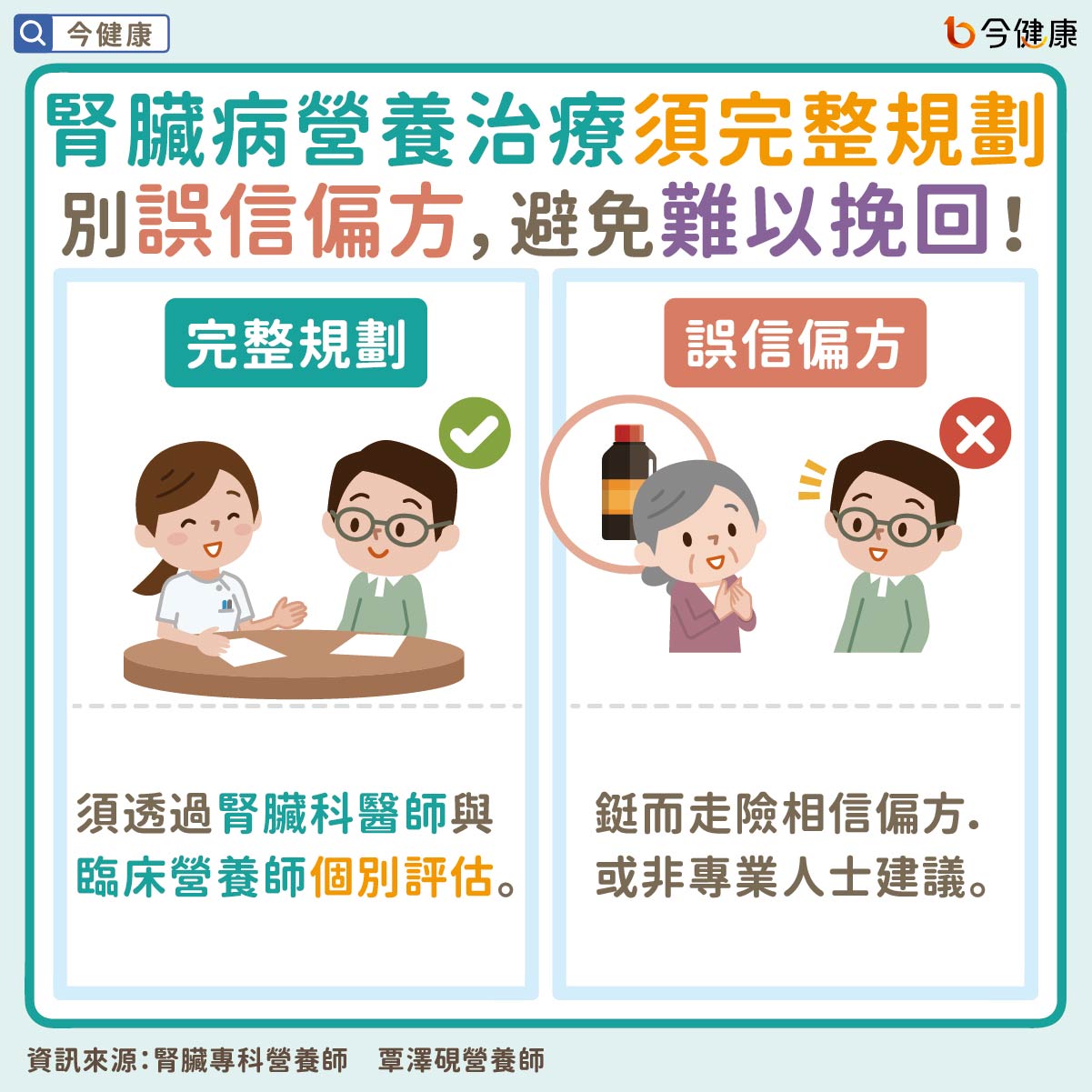 控制重點在限蛋白、補熱量、選優質來源,並監測體重避免不足: