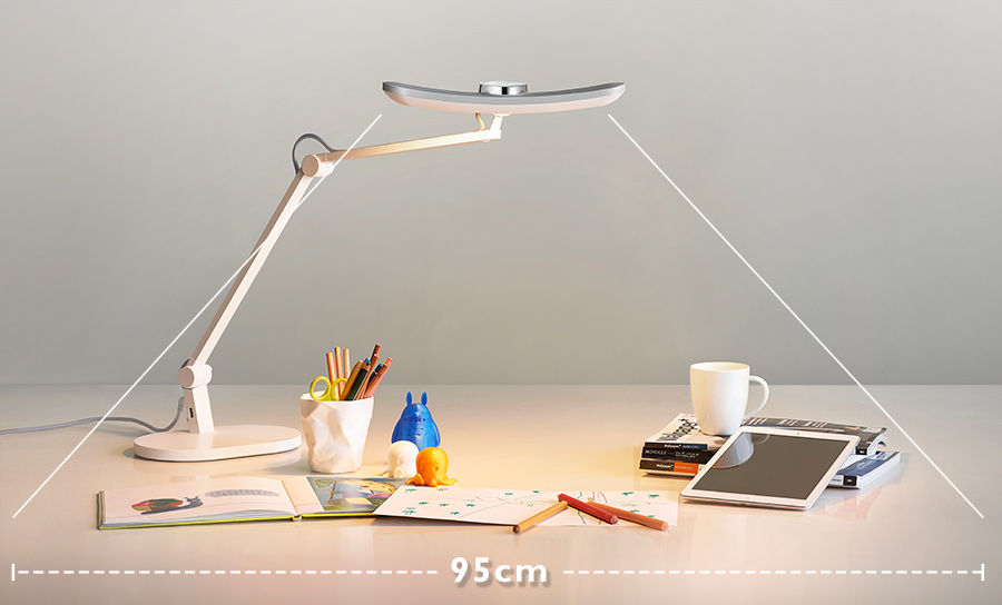 - 廣泛適用性:照明均勻充足,涵蓋螢幕閱讀、親子共讀、鋼琴燈等情境,中心照度高達1000lux以上;燈具壽命長,造型現代簡潔,可桌夾安裝。
