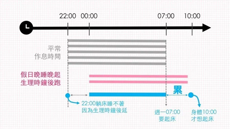 - 規律作息:每天固定時間上床起床