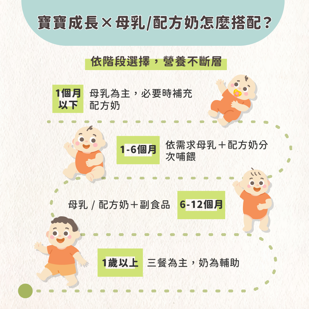 較常見的做法是以一餐一餐的方式逐步轉換,大約一週左右完成換奶。若寶寶已經適應目前的奶粉,建議不要隨意更換,以免造成腸胃不適。