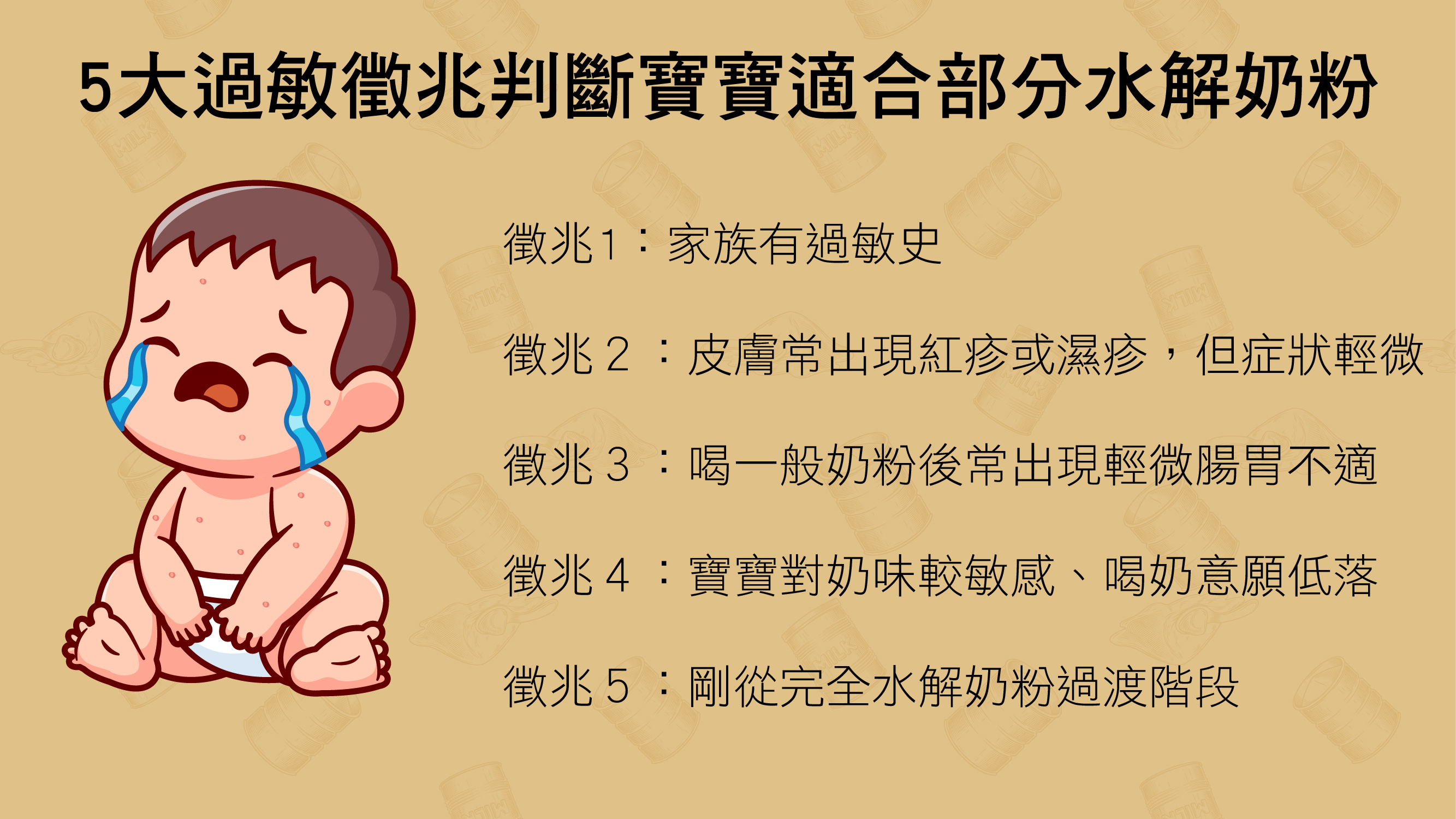 - 身體症狀:是否出現腹瀉、過敏、便祕或吐奶等現象
