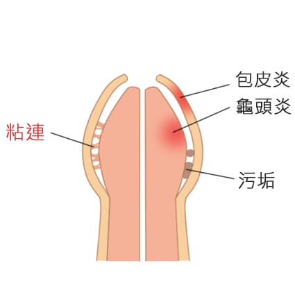 - 反覆包皮炎或龜頭炎:出現紅腫、搔癢、疼痛、白屑或膿狀分泌物,重複發生時需處理,以避免長期影響生理與心理發育。