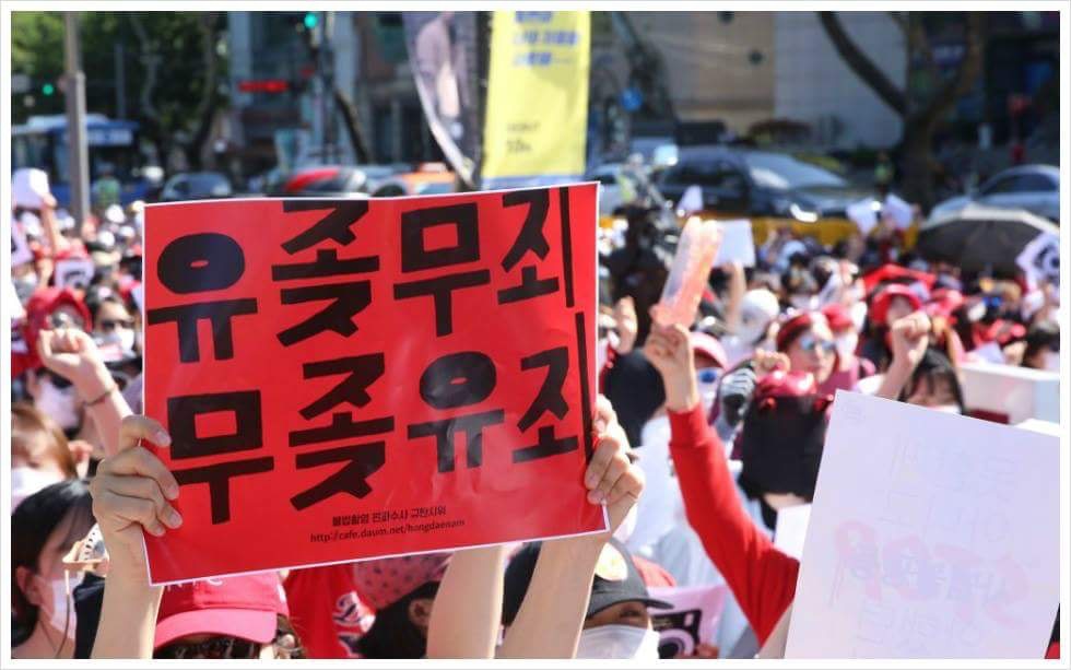 - 自2018年「弘大偷拍事件」爆發後,上萬名女性多次走上首爾街頭示威,高呼「我的生活不是你的A片」,抗議偷拍猖獗,參與人數最高達7萬人,並有40萬人連署請願。