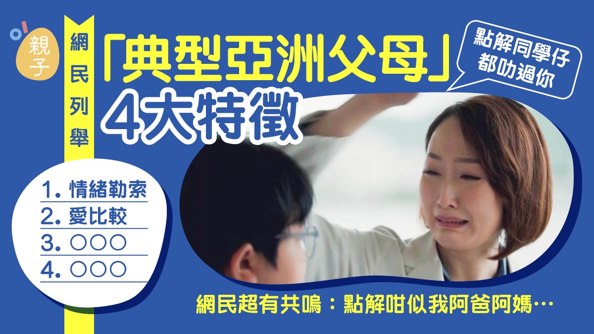 亞洲父母的教育方式通常被歸類為「權威式」教養,強調父母對孩子的高度控制與主導,期望孩子能按照父母設定的人生藍圖發展,這種方式在亞洲多國普遍存在。這種教育方式的特點包括: