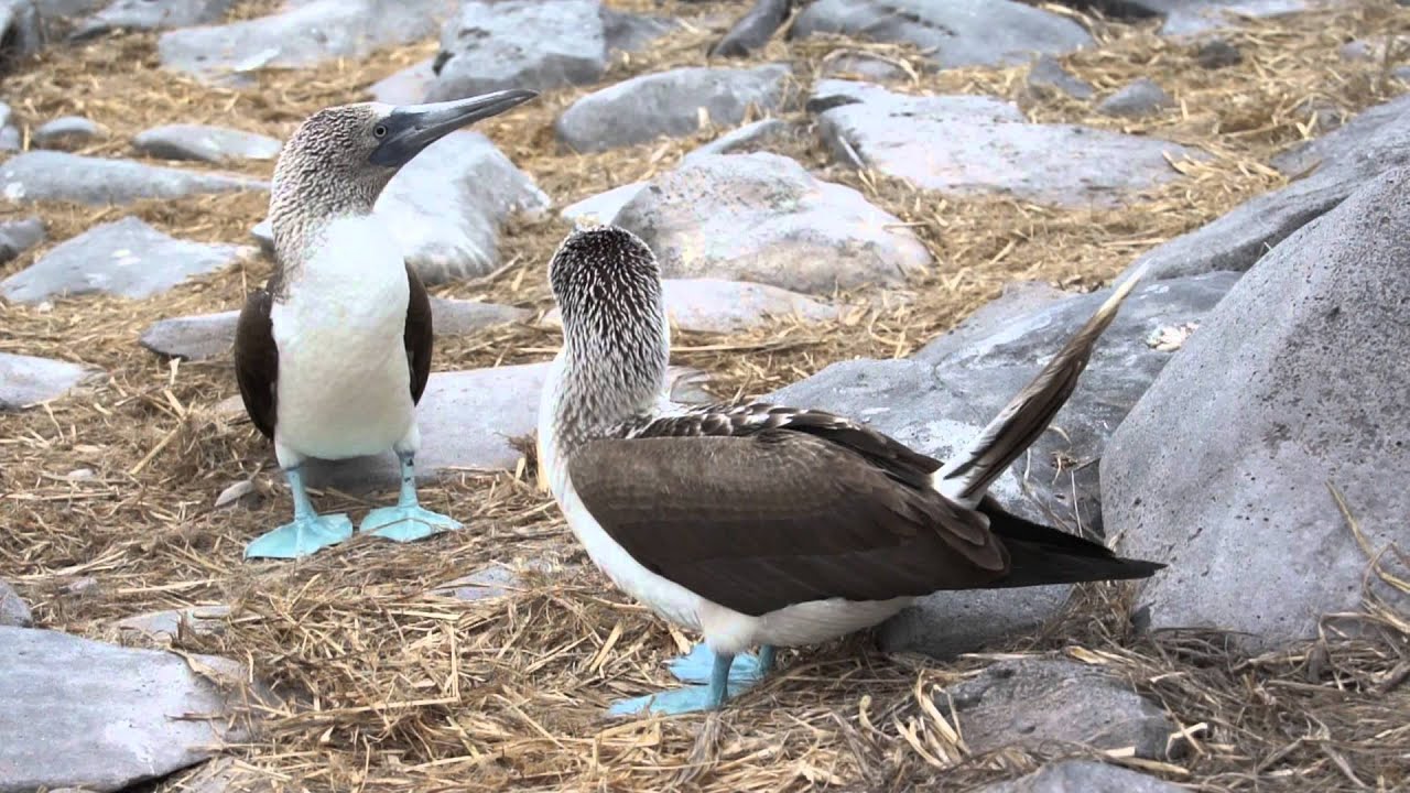 藍腳鰹鳥的求偶行為以腳掌展示為核心,雄鳥透過獨特的步態舞蹈來吸引雌鳥。