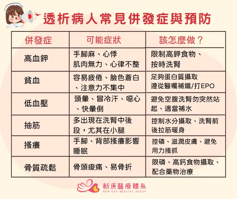 - 調整透析參數:如低溫透析、謹慎調乾體重,避免低血壓。