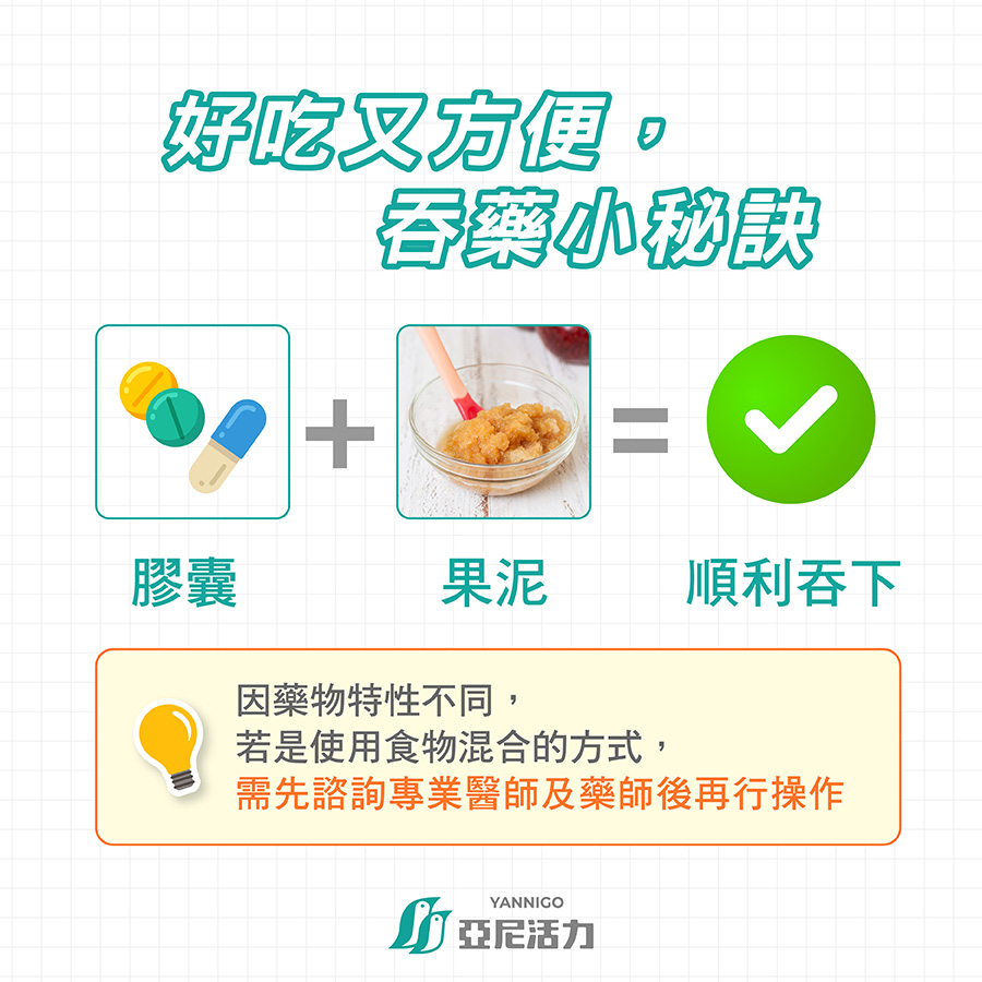 - 水瓶法(適合硬片或錠劑):舌上放藥,瓶口45度微仰頭,連續喝水帶藥下咽,提升成功率。
