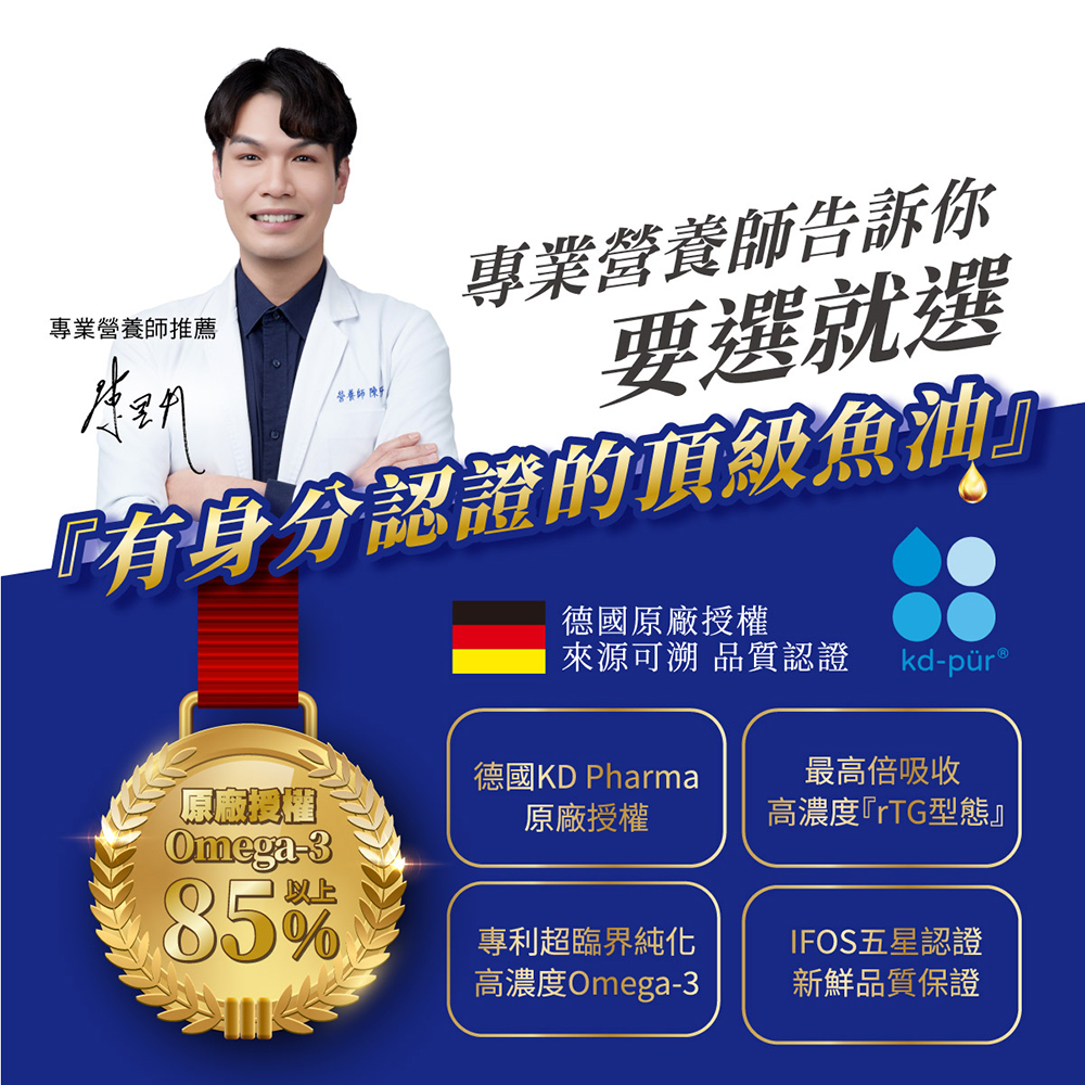 - 德國KD Pharma原廠授權:具備專業製造背景,品質有保障,被形容為「有身分證的魚油」。