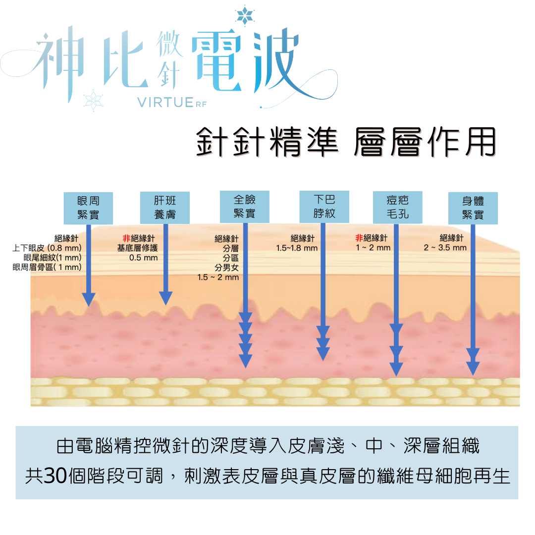- 療程建議:1-3次即可見效,膠原生成需3週以上,效果持續至24個月,依個人狀況調整針深。