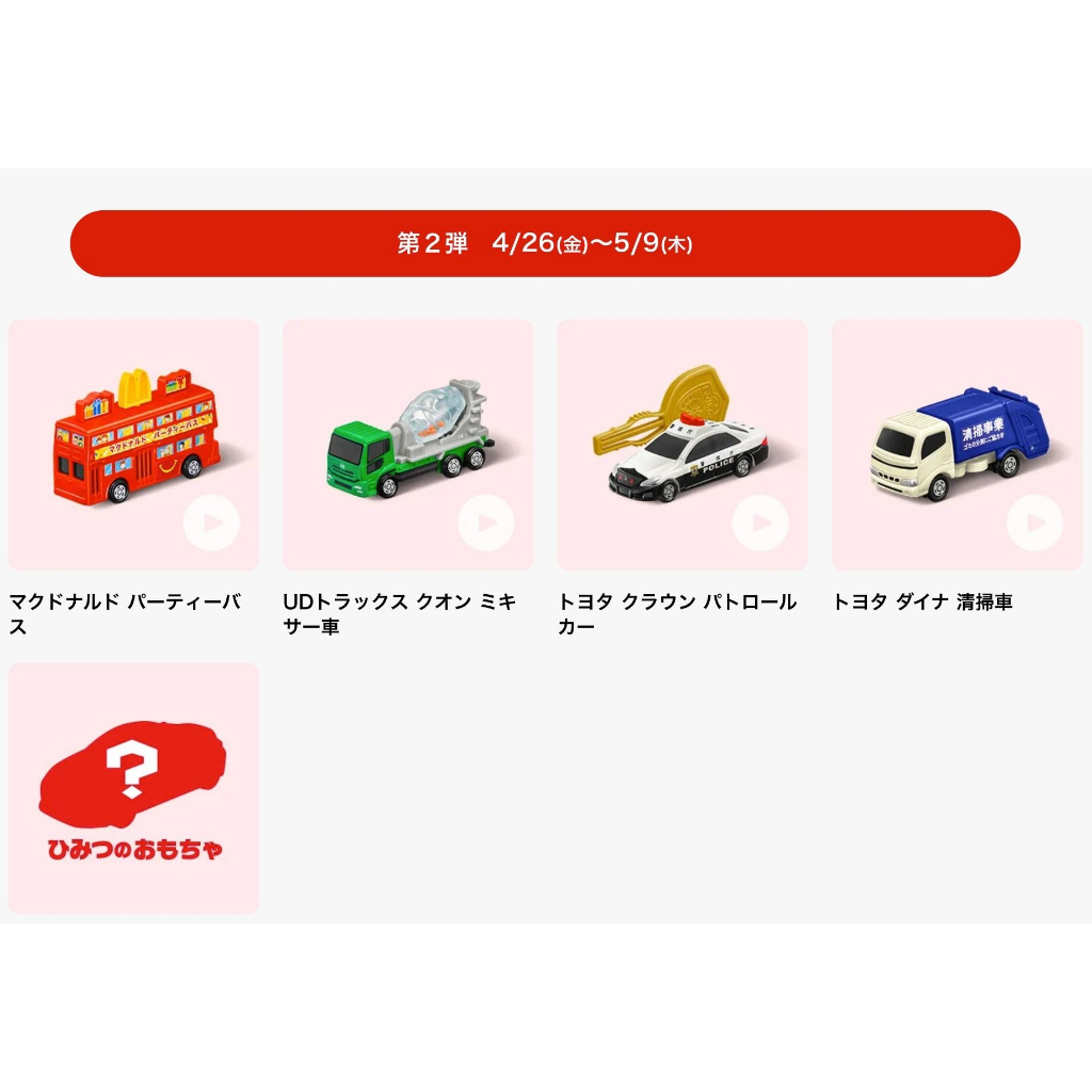 如果想要最新推出的商品,也可以在活動期間直接到日本麥當勞購買。根據最新資訊,日本麥當勞將於 4 月 11 日起推出新一波 TOMICA 聯名玩具,為期三週。
