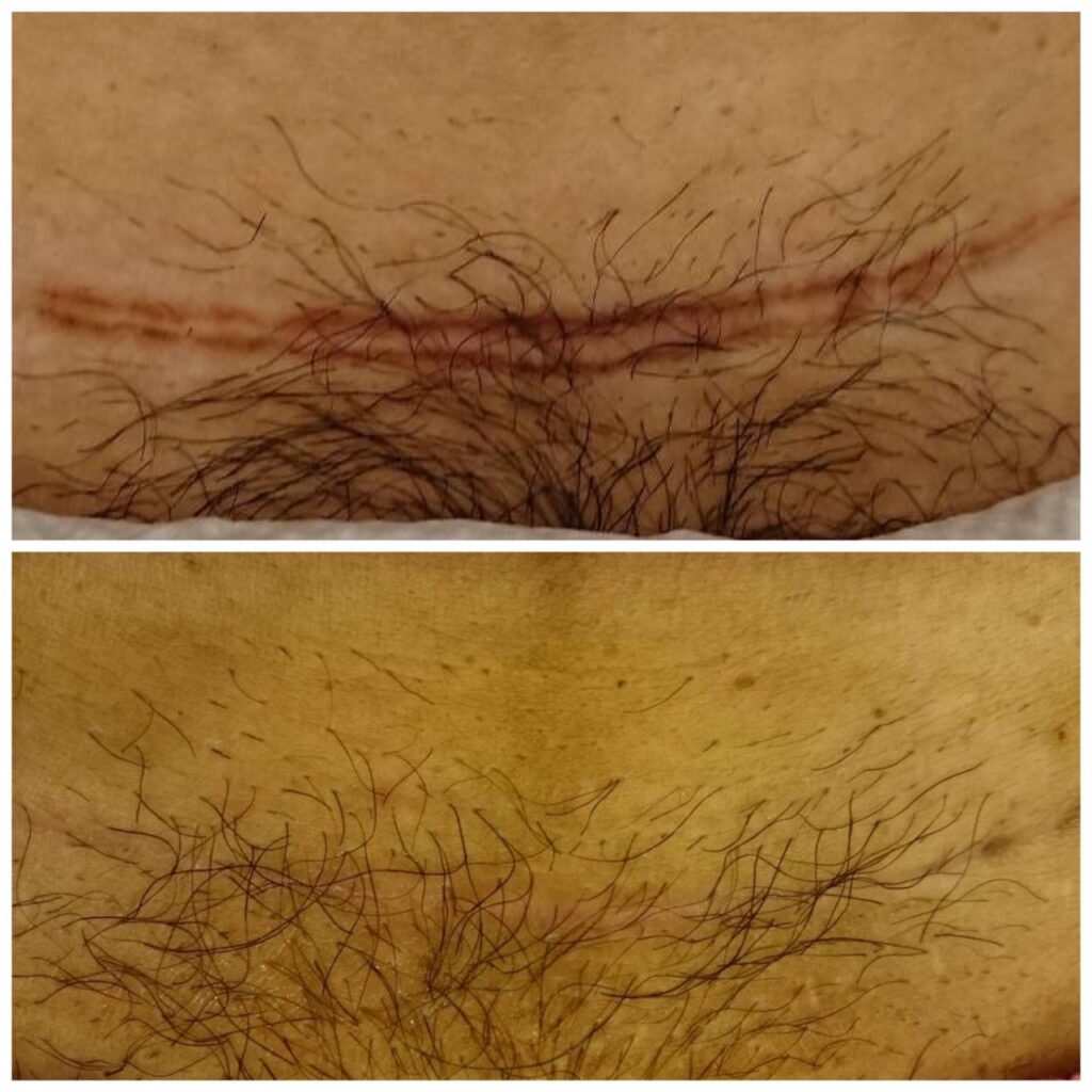 - UP雷射及SCAAR FX模式:針對增生型疤痕或蟹足腫,鬆解組織後重組,改善剖腹產蚯蚓狀疤痕,東方人反黑風險低,修復期短(防曬保濕即可),患者回饋疤痕變平滑、變軟、褪紅、邊緣透明、體積縮小。