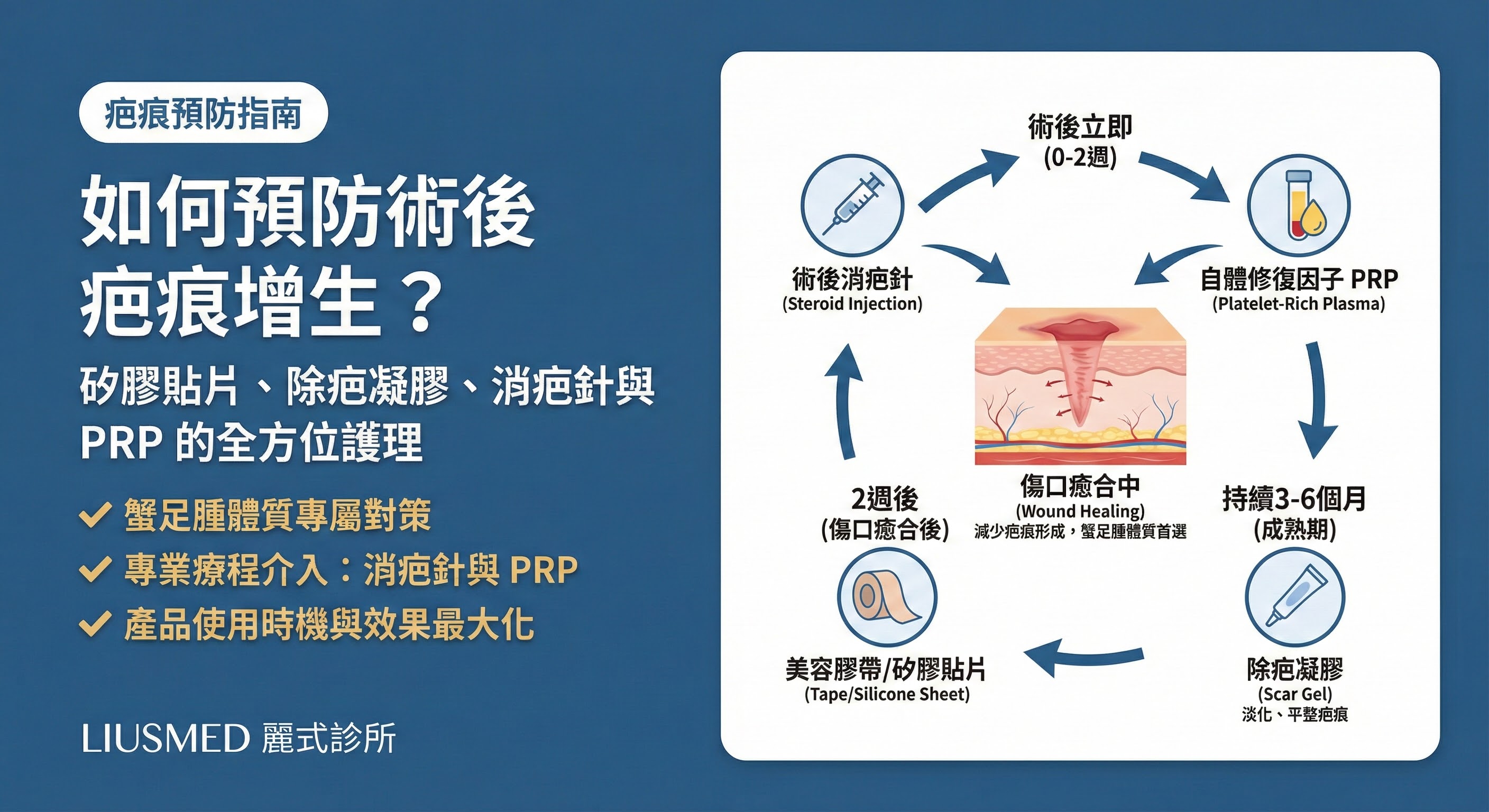 - 術後10-14天:傷口完全癒合無滲液時,貼防疤產品預防疤痕。