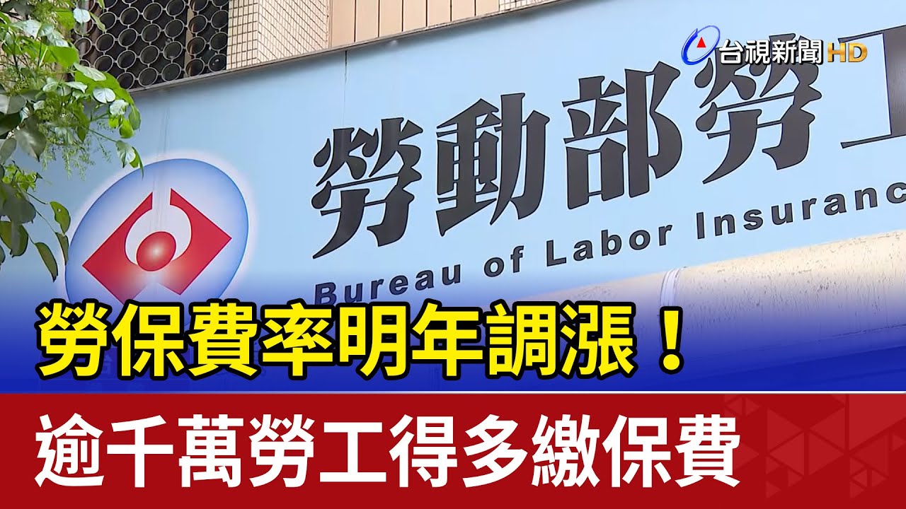 勞保費率明年調升0.5個百分點至12.5%(含1%就業保險),導致雇主及政府負擔合計增加約26億元,主要來自職業工會勞工保費調升影響。