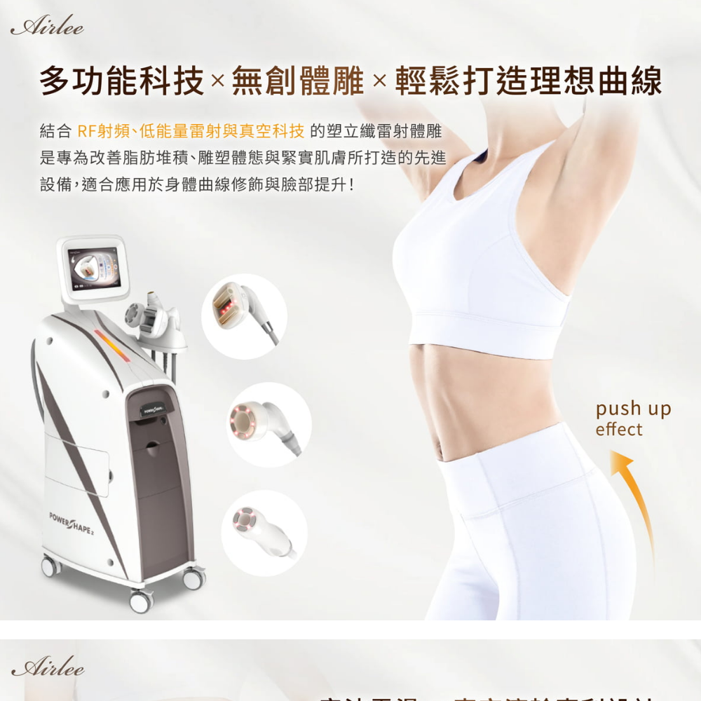 身型 問題特徵 推薦部位 蘋果型 上半身脂肪多 腰腹、手臂 梨型 下半身囤積(亞洲女性常見) 腰腹、下肢 沙漏型 大腿臀部豐滿鬆弛 大腿、臀部