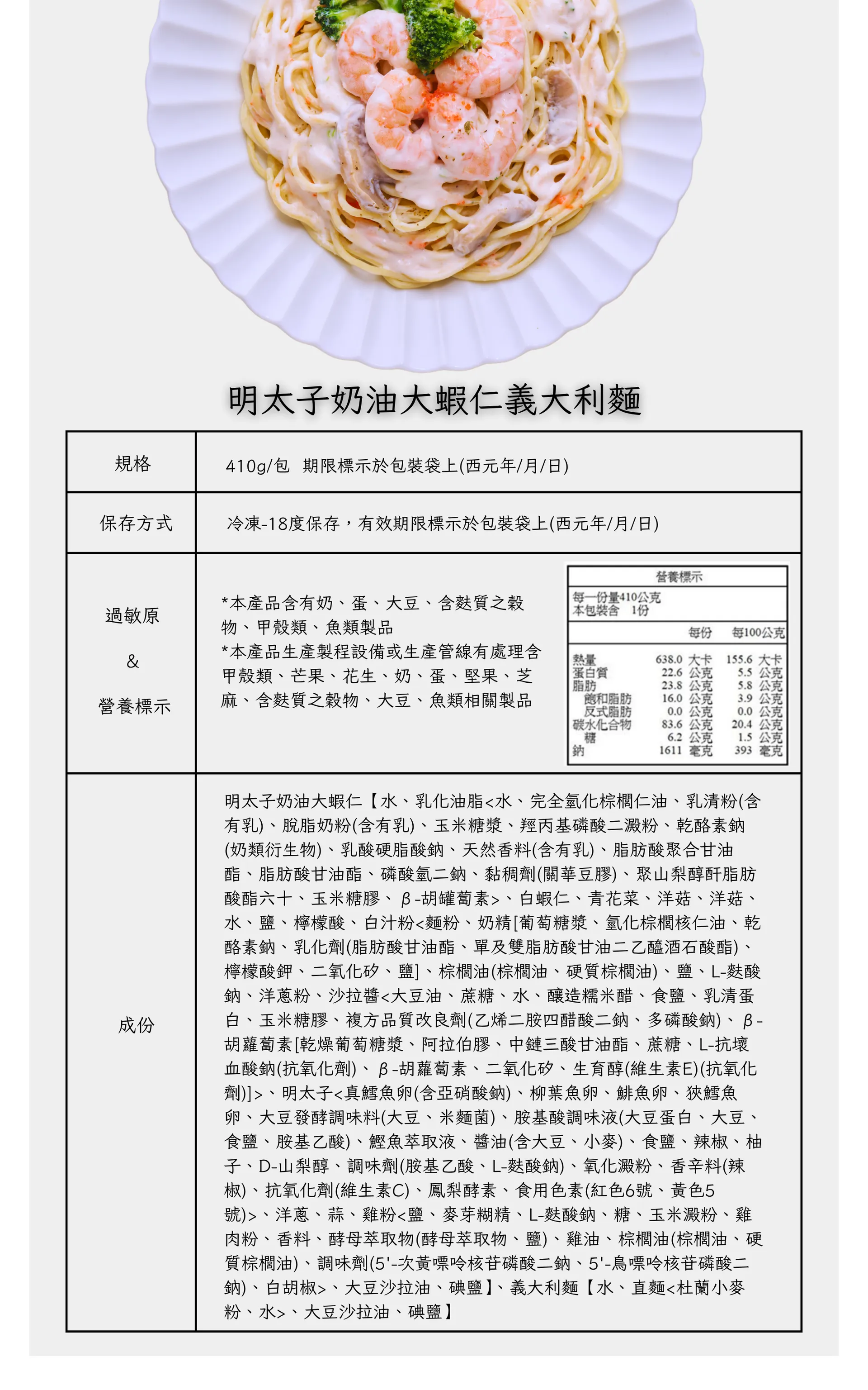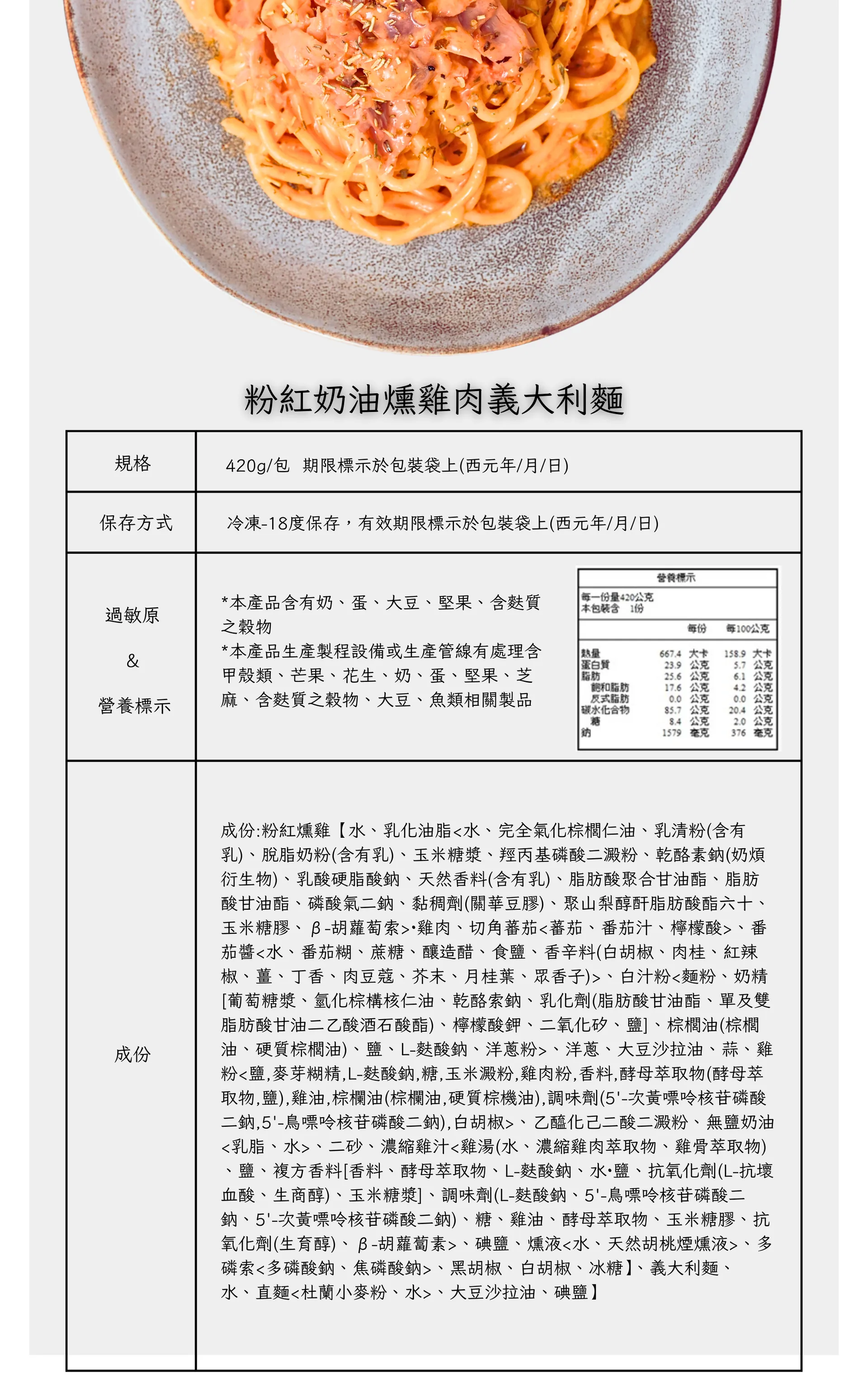 加熱方式簡單便利,只需隔水加熱10分鐘即可享用餐廳級義大利麵。2026年推出新包裝,成份和加熱方式都有完整標示。