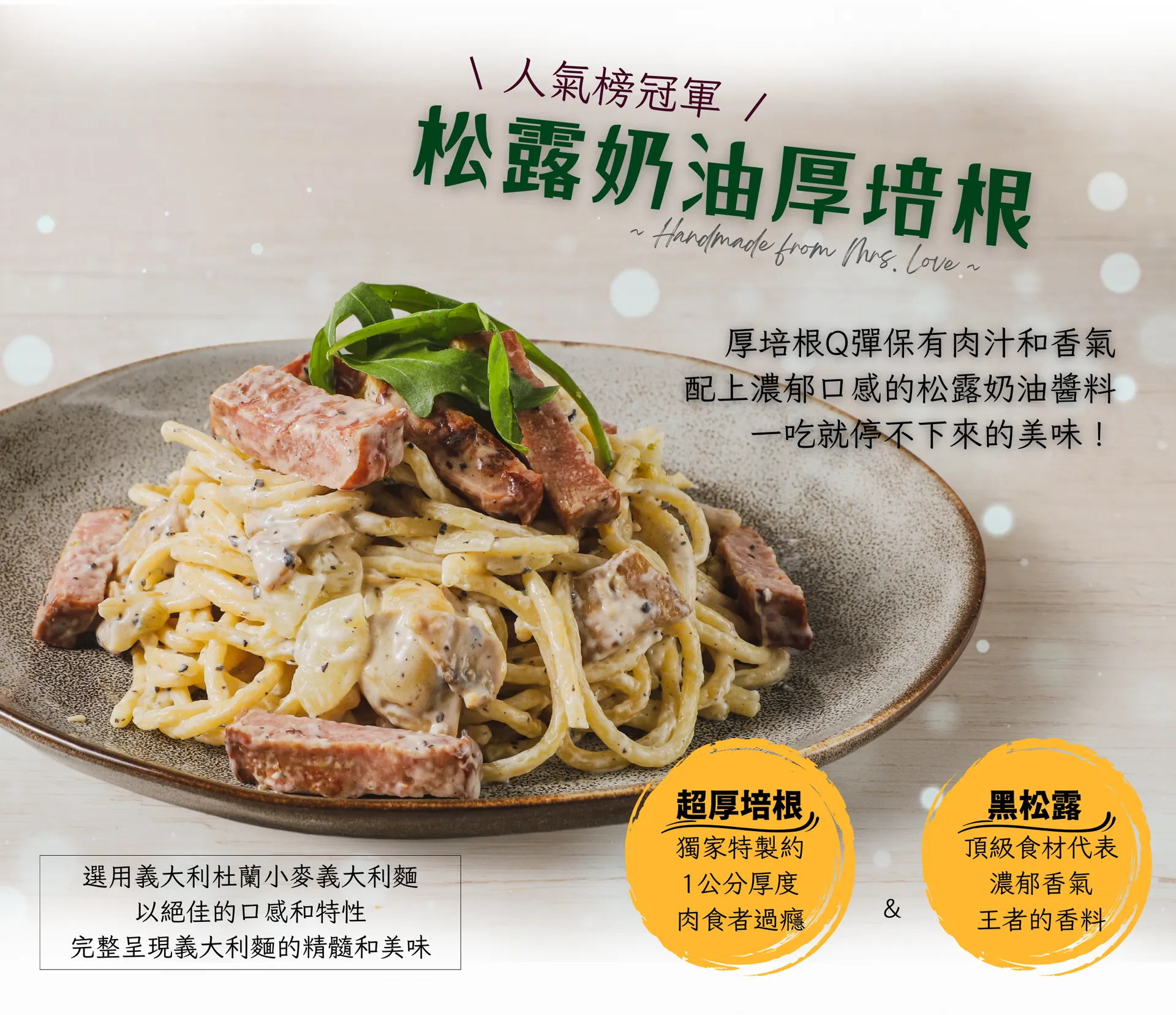 義大利麵採用冷凍保存,可保存三個月。加熱方式簡單便利,適合現代忙碌的上班族、小家庭與家庭主婦等有快速飲食需求的消費者。