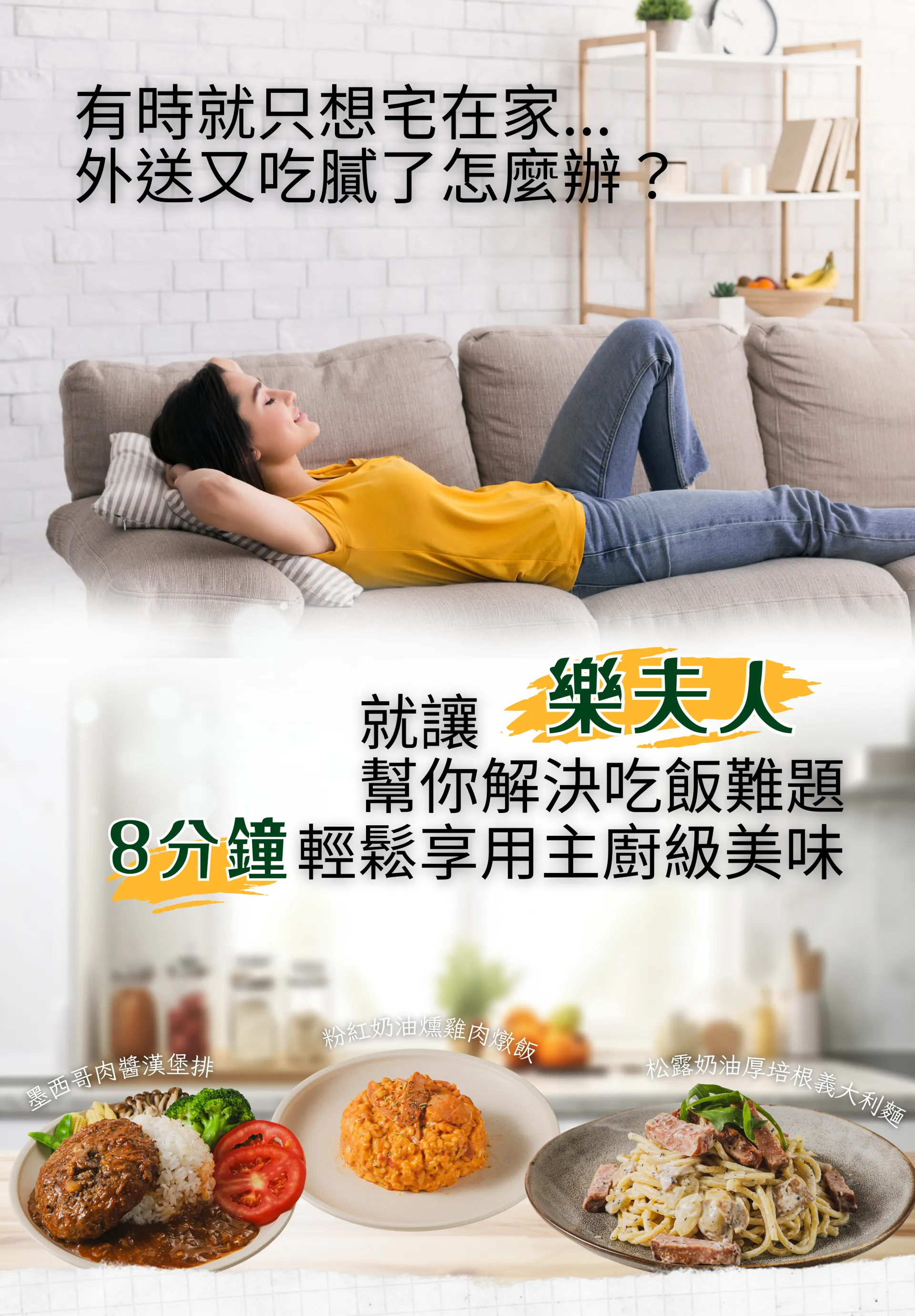 樂夫人(Mrs. Love)的料理包以冷凍加熱即食調理包為主,非常適合家庭與小孩,因為操作簡單(約8分鐘上桌)、用料健康實在,且多樣口味迎合兒童喜好。