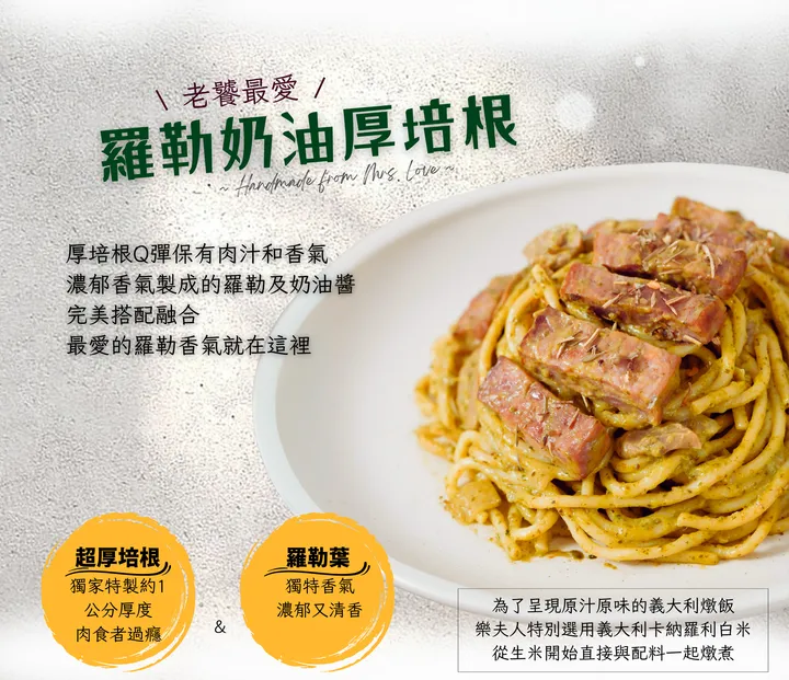 - 羅勒燉飯、厚培根燉飯(連不愛培根小孩也會喜歡,簡單搭青菜即可)。
