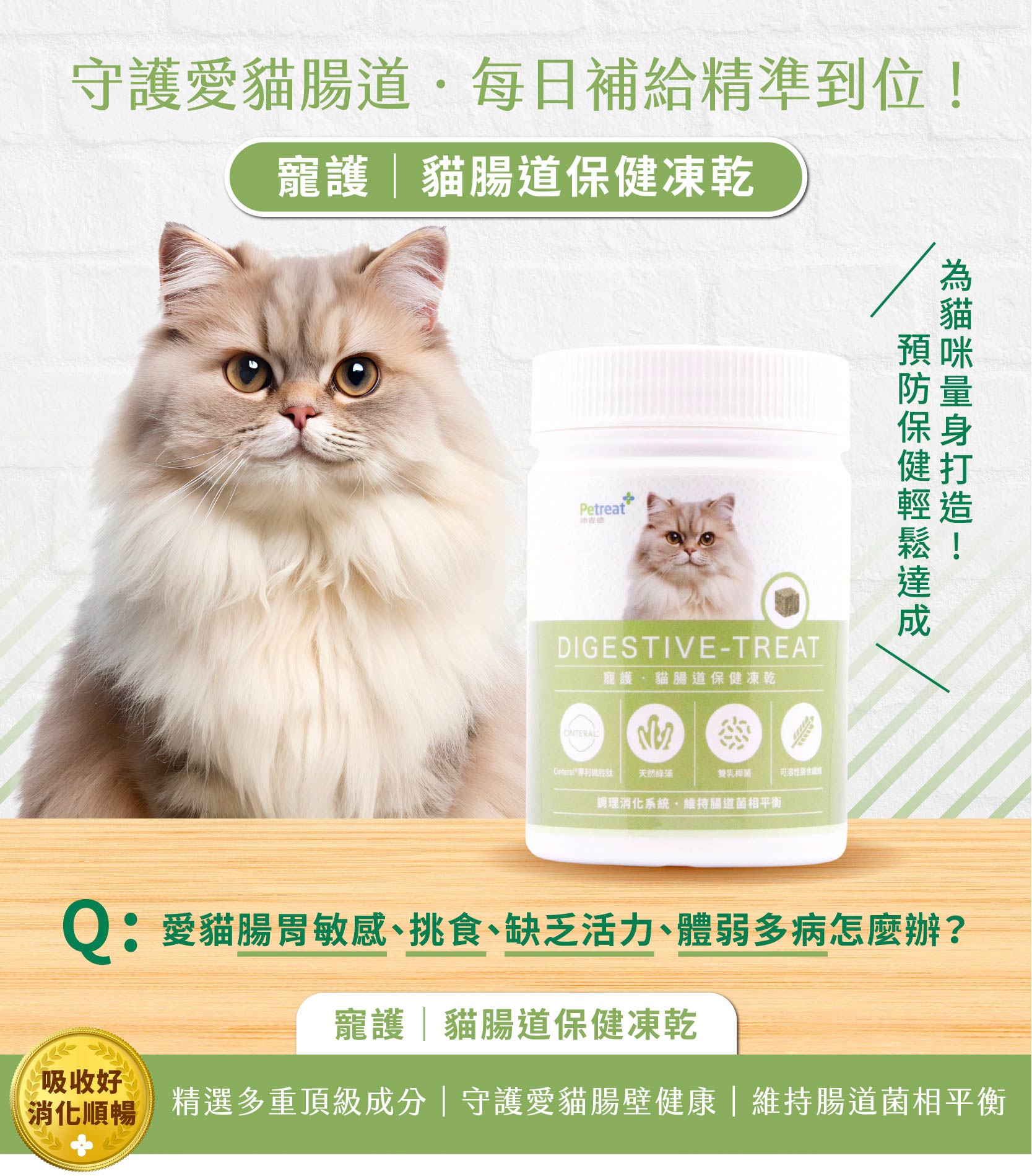 凍乾的復水性也有助改善腸胃健康——其海綿狀結構可加入水分還原,增加貓咪對水分的攝取,這對預防脫水相關的腸胃問題有益。