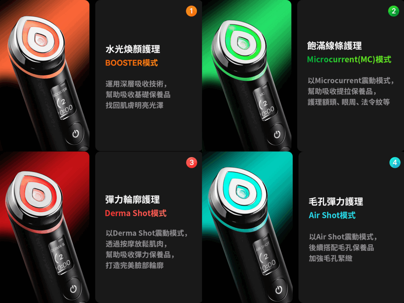 - 結合按摩手法:提拉循環促進循環,加乘緊緻效果;冷藏導頭或保養品可抗浮腫、鎮靜肌膚。