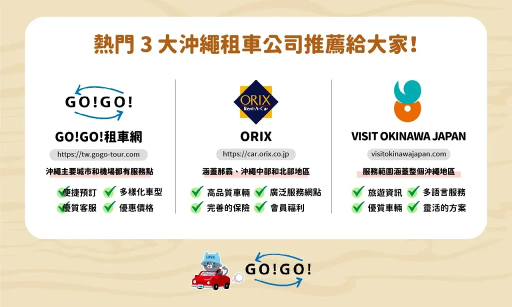 沖繩租車公司常見優惠包括早鳥折扣、機場接駁及特定車款特價,更便宜選擇則可透過比價平台如KAYAK、Klook或Tabirai,找到每日NT$575~NT$647起的小型車款。
