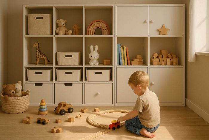 - 3-4歲階段:孩子大致了解整理方法,如依顏色或類別分類玩具(例如車車放一箱、娃娃放另一箱),並開始理解「每樣東西有它的地方」,但獨自完成時仍不夠熟練,容易半途而廢。